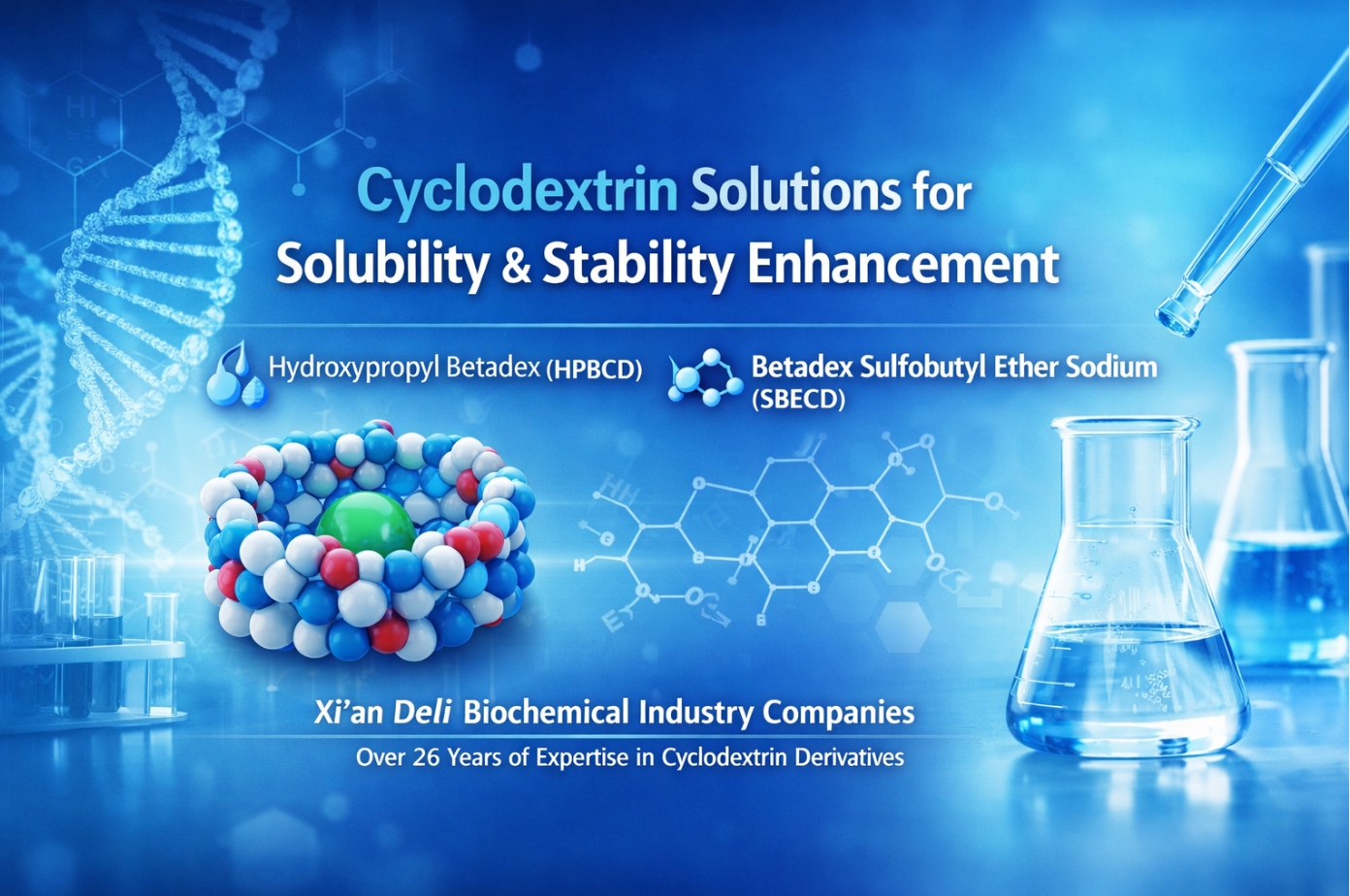 사이클로덱스트린은 잘 녹지 않거나 화학적으로 민감한 화합물의 용해도와 안정성을 향상시키는 능력으로 널리 알려져 있습니다. 독특한 고리형 분자 구조로 인해 사이클로덱스트린과 그 유도체는 제약, 화학 및 관련 제형 분야에서 중요한 기능적 부형제가 되었습니다. 증가하는 기술 및 규제 요구 사항에 대응하여 Xi'an Deli Biochemical은 주요 시클로덱스트린 유도체에 대한 기술 문서 및 제품 지원을 더욱 개선했습니다.하이드록시프로필 베타덱스(HPBCD) 및 베타덱스 설포부틸 에테르 나트륨(SBECD).