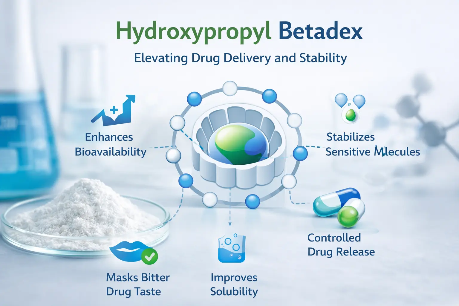 하이드록시프로필 베타덱스잘 녹지 않는 약물을 매우 효과적인 제제로 바꾸는 혁신적인 의약 성분입니다. 이 변경된 시클로덱스트린 유도체에는 더 나은 약물 용해도, 더 나은 생체 이용률 및 더 나은 안정성과 같은 많은 장점이 있습니다. 분자 캡슐 기술은 다른 제형에서 발생하는 문제를 해결하는 안정적인 포접 복합체를 만듭니다. 전 세계 제약 산업의 과학자들은 이 유연한 폴리머 담체를 사용하여 약물 전달 방법을 개선하고 독성을 낮추며 경구 및 주사 용도 모두에 대해 일관된 치료 결과를 얻습니다.